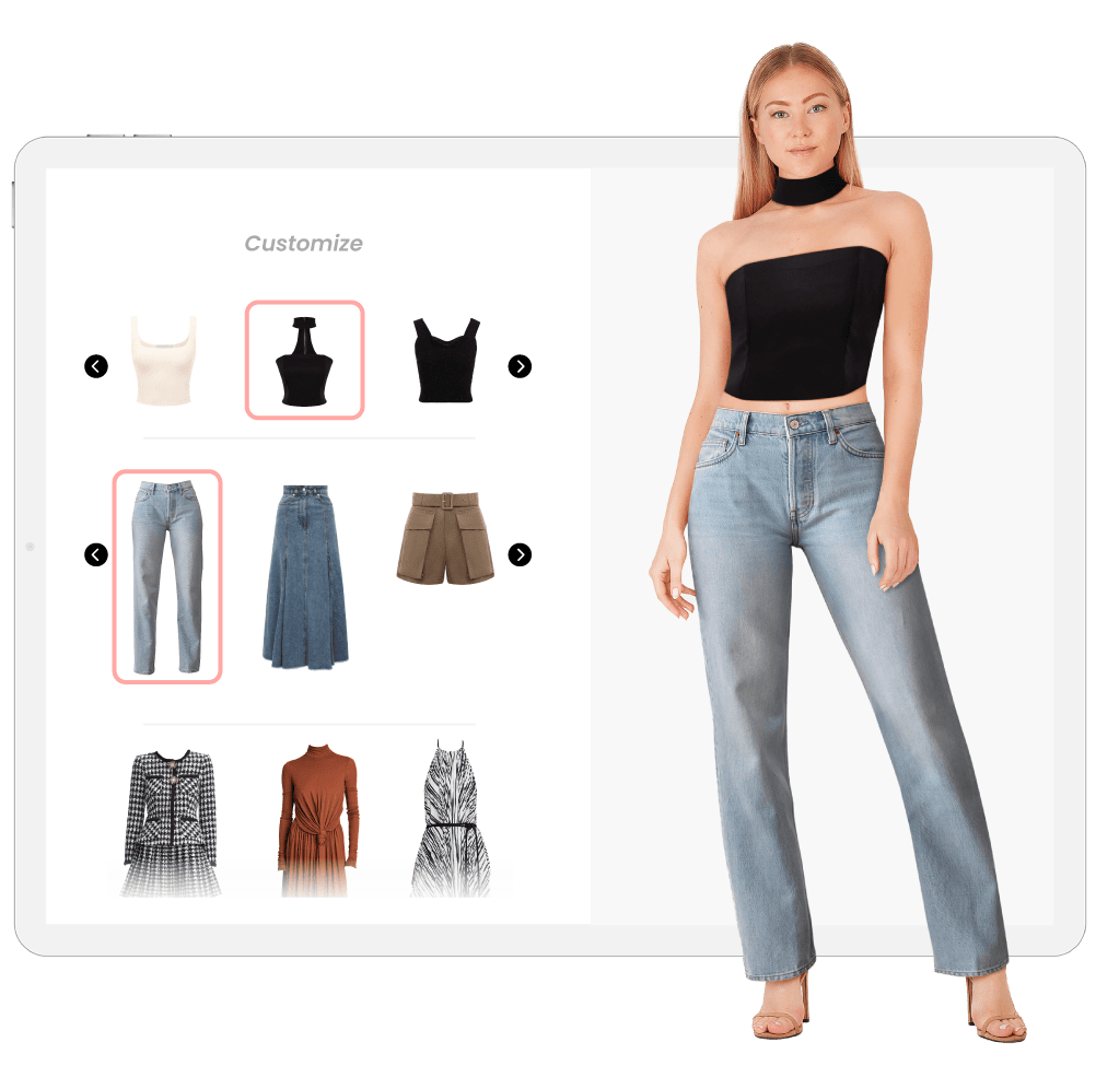 The Dressing Room tool can be added to the eCommerce site with the interface and model customizations set by the retailer.